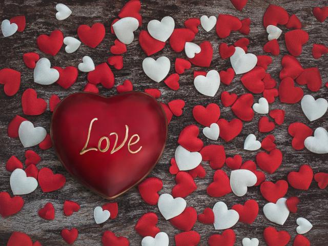 Wallpaper A big red heart with the inscription Love among the little hearts