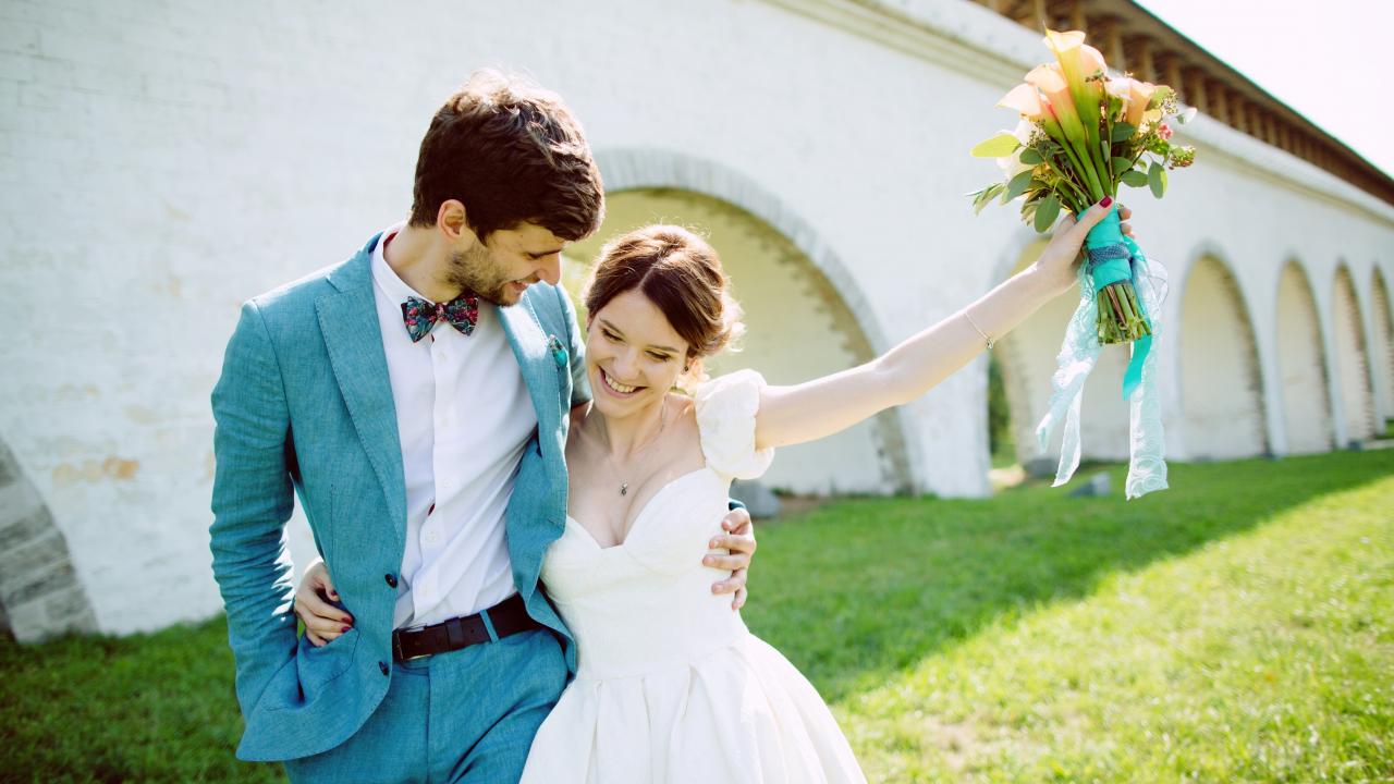 Wallpaper Little boy and girl dressed up as a bride and groom