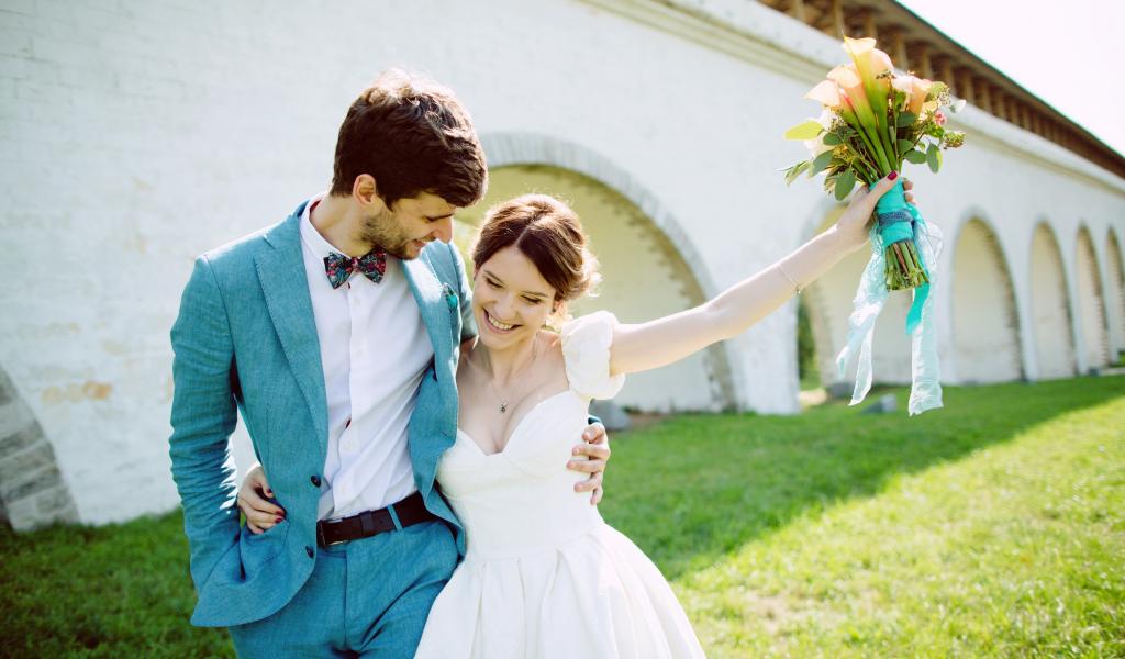 Wallpaper Little boy and girl dressed up as a bride and groom