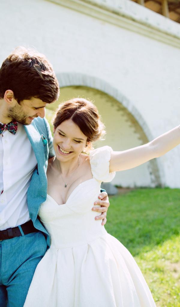 Wallpaper Little boy and girl dressed up as a bride and groom