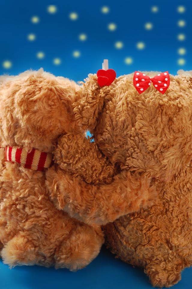 Wallpaper Two loving bear cub Teddy on the background of the inscription Love