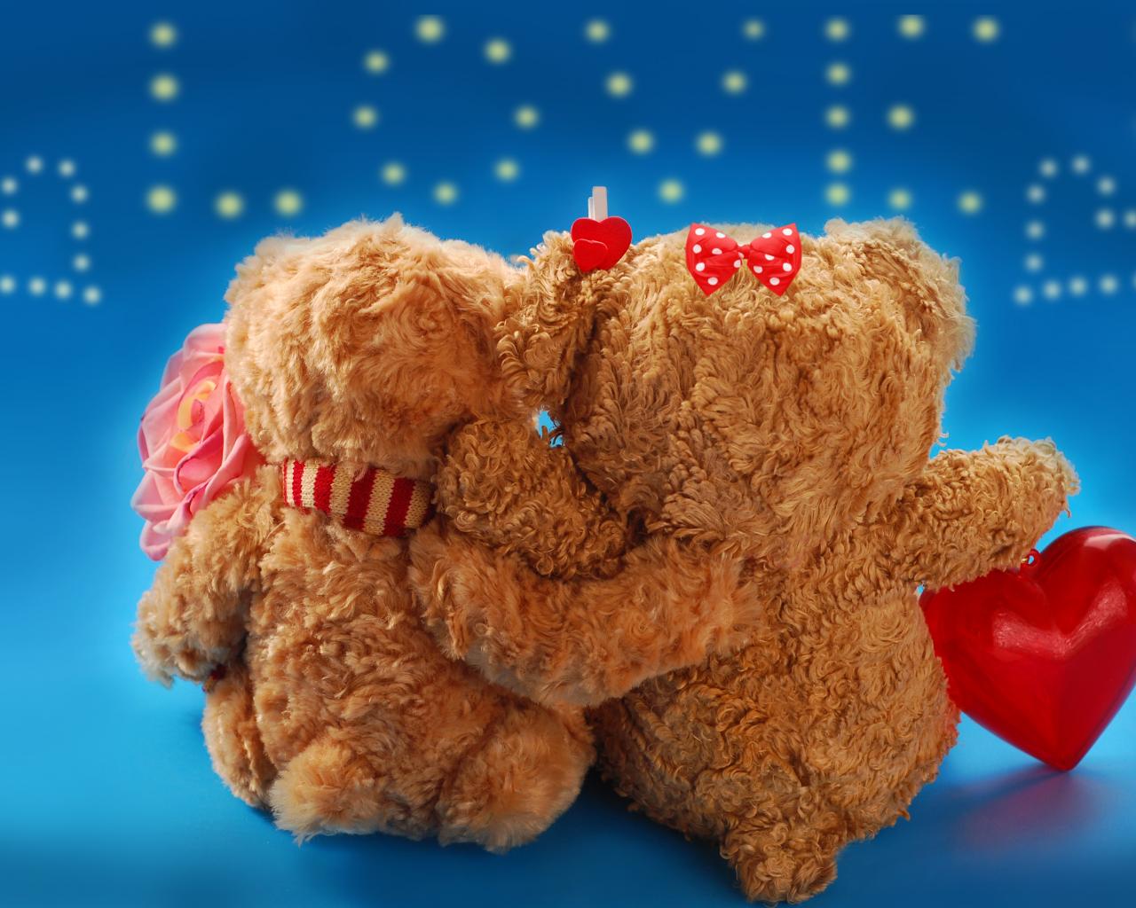 Wallpaper Two loving bear cub Teddy on the background of the inscription Love