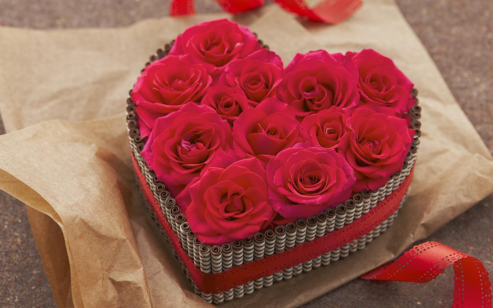 Wallpaper Large heart-shaped box with red roses inside