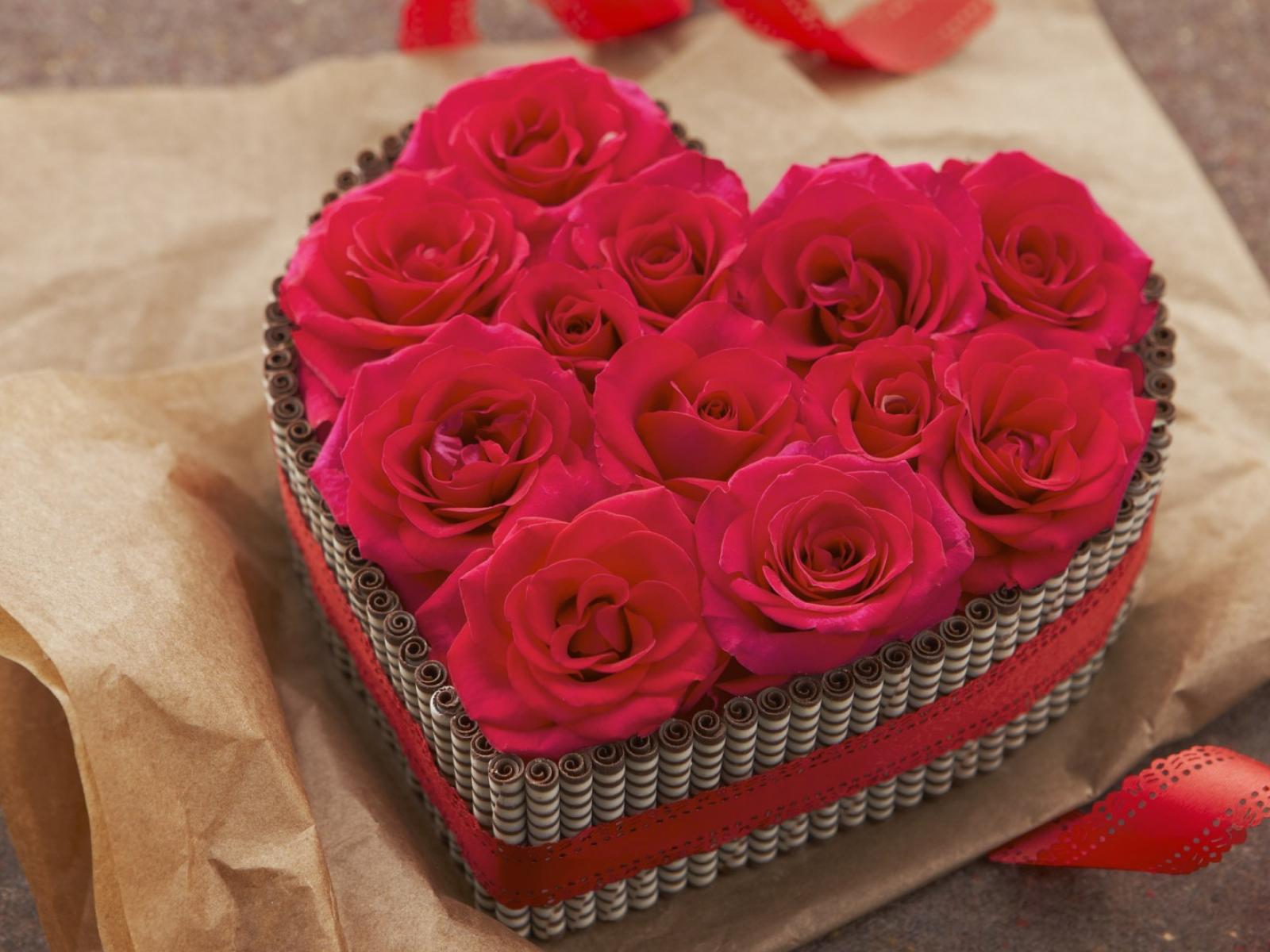 Wallpaper Large heart-shaped box with red roses inside