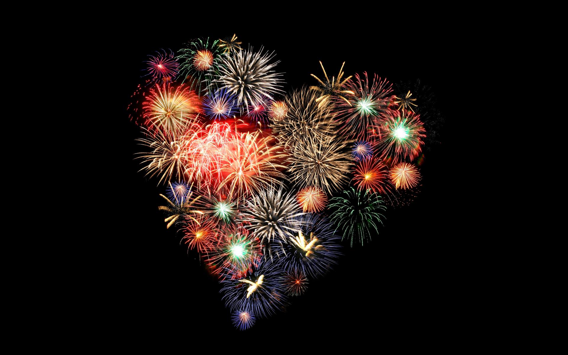 Wallpaper Firework in the form of heart on a black background