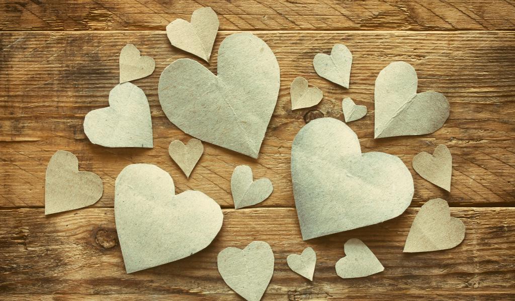 » Wallpaper Paper hearts on a wooden table