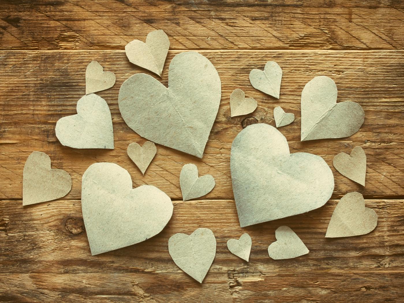 Wallpaper Paper hearts on a wooden table