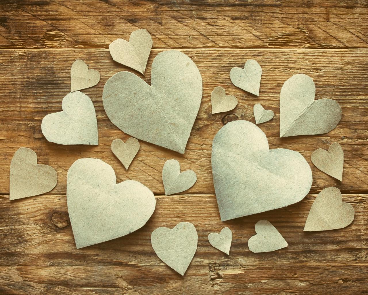 » Wallpaper Paper hearts on a wooden table