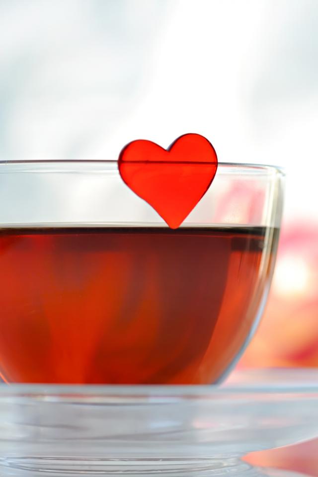 Wallpaper A small red heart in a glass cup with tea