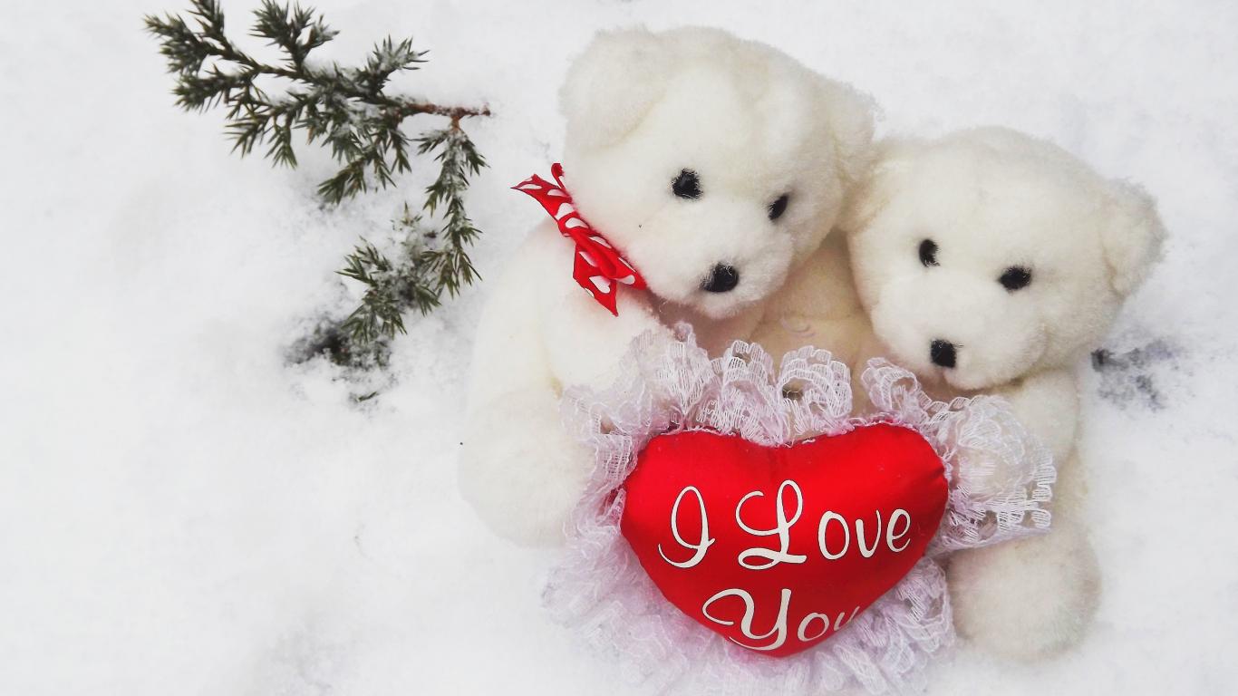 Wallpaper Two white teddy bears with a heart