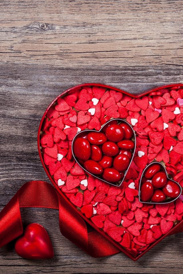Wallpaper A box of chocolates in the shape of a heart with a red ribbon as a gift