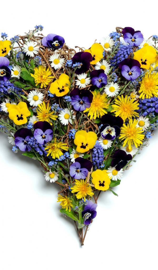 Wallpaper Heart of wildflowers on a white background