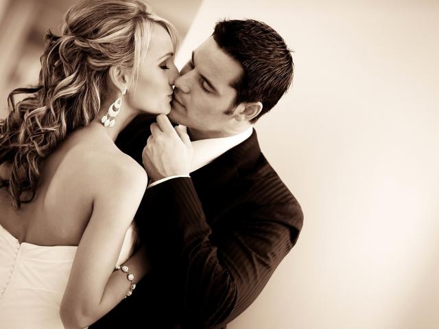 Wallpaper Romantic kiss of the bride and groom