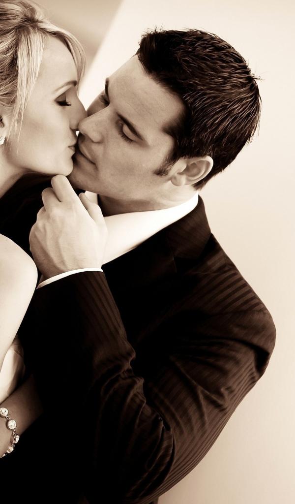 Wallpaper Romantic kiss of the bride and groom