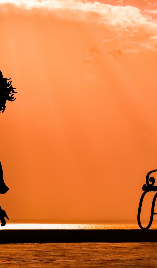 Wallpaper Silhouette of a kissing couple in love under moonlight