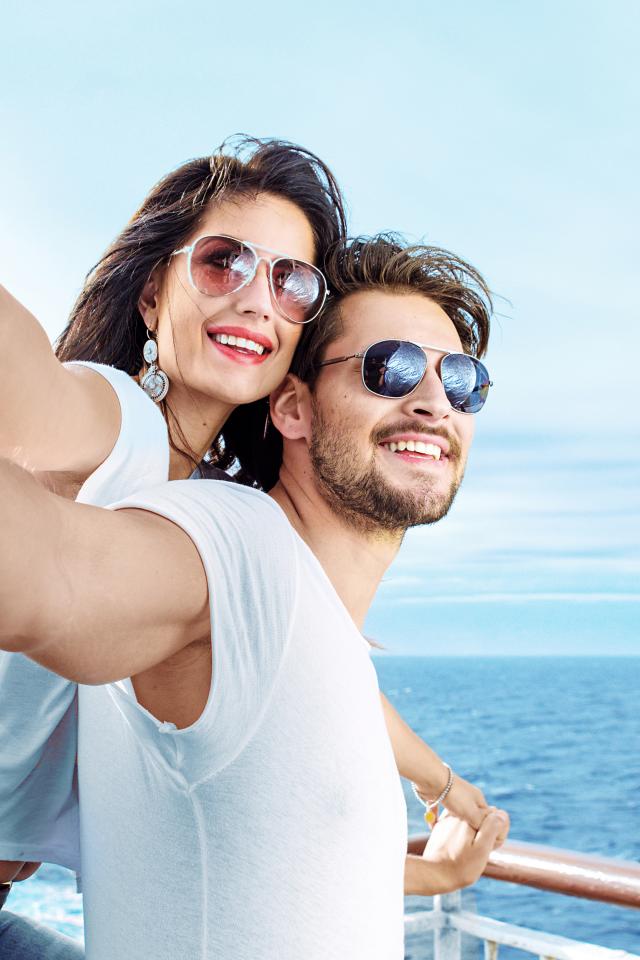 Wallpaper A loving couple holding hands against the sea