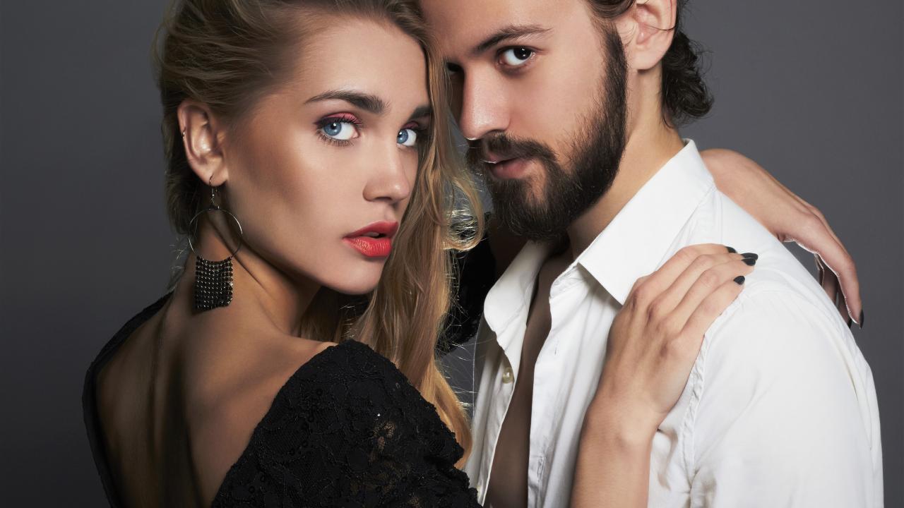 Wallpaper Stylish couple in love on a gray background