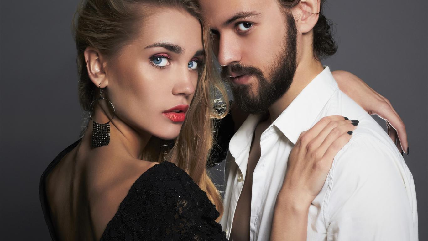 Wallpaper Stylish couple in love on a gray background