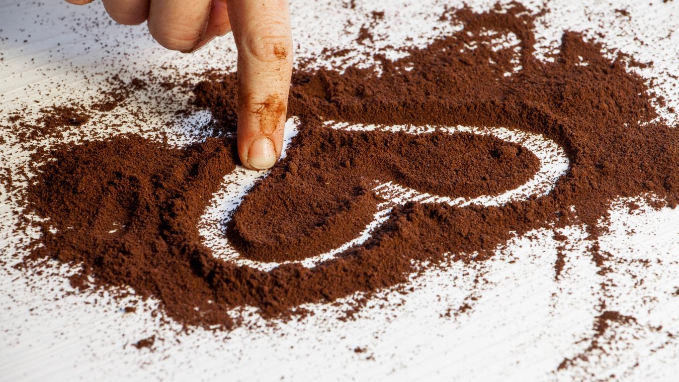 Wallpaper A white cup of coffee in the form of heart stands on coffee beans