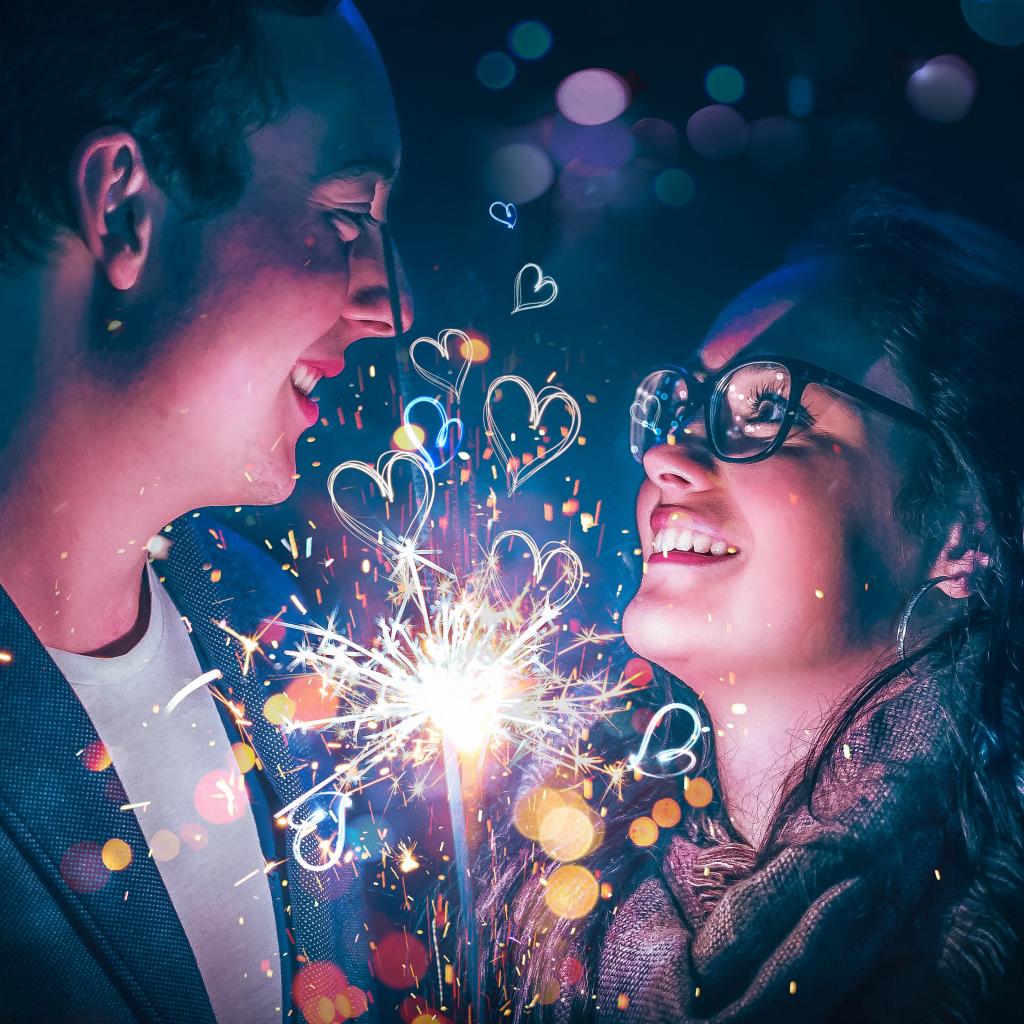 Wallpaper Lovers boy and girl with sparkler in hand
