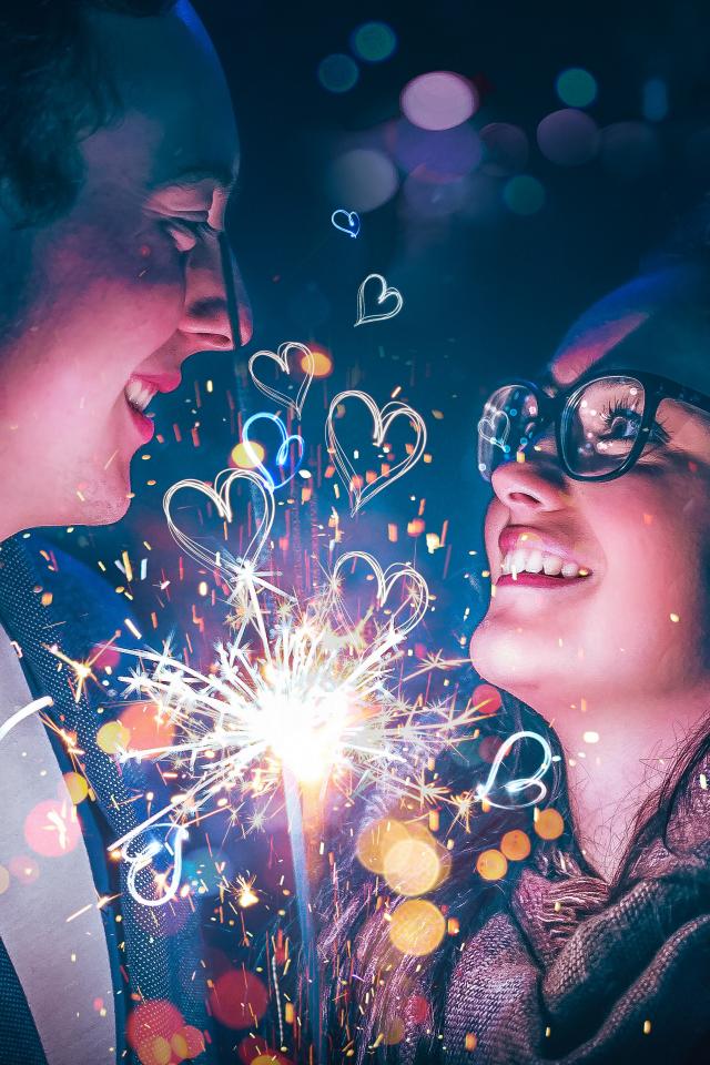 Wallpaper Lovers boy and girl with sparkler in hand