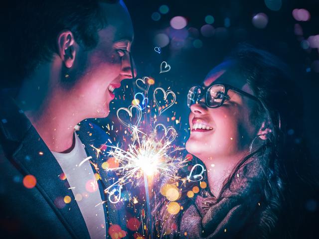Wallpaper Lovers boy and girl with sparkler in hand