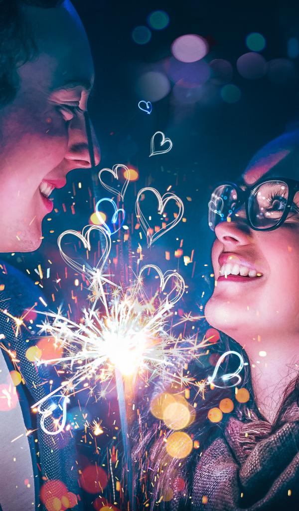 Wallpaper Lovers boy and girl with sparkler in hand