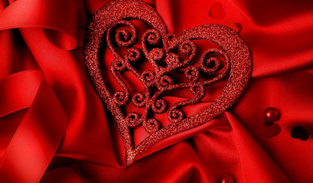 » Wallpaper Brilliant heart on a red satin fabric