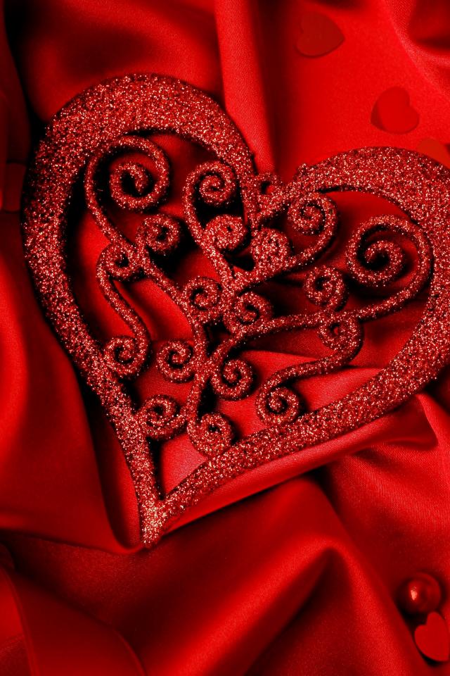 Wallpaper Rose and heart on satin for Valentine`s Day February 14