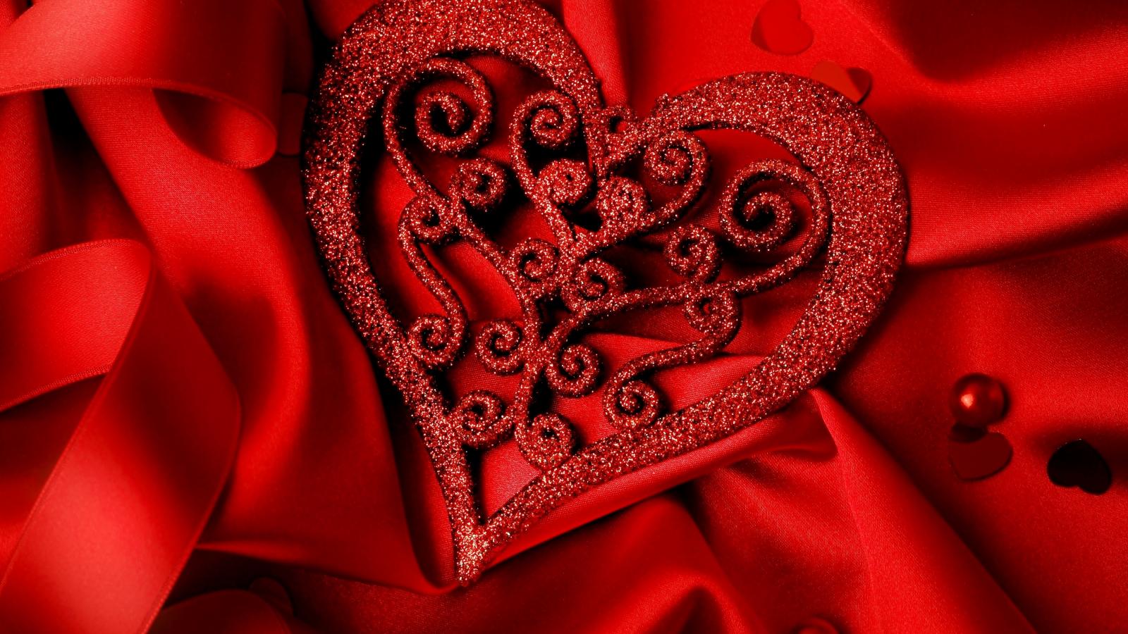 » Wallpaper Brilliant heart on a red satin fabric
