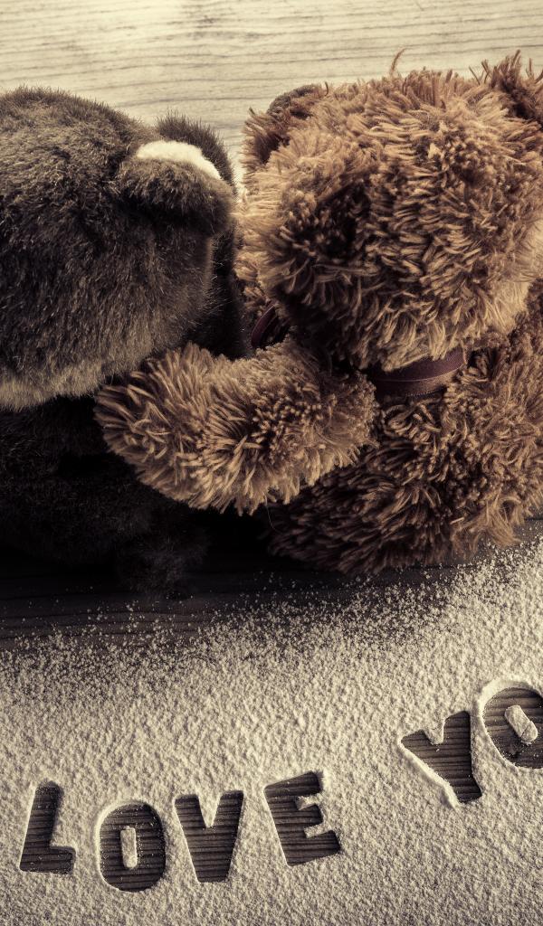 Wallpaper Two teddy bears on the background of the inscription I love you