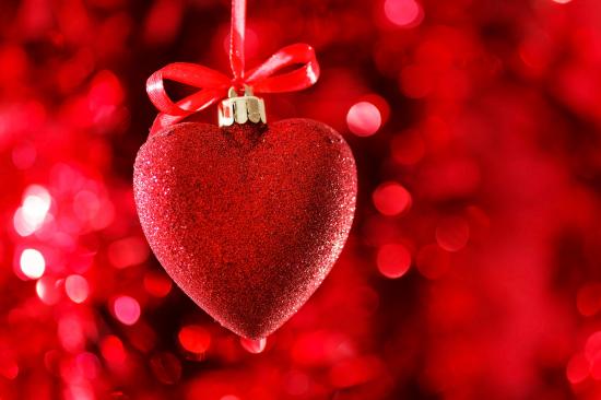 Wallpaper Red big shiny heart with ribbon on red background