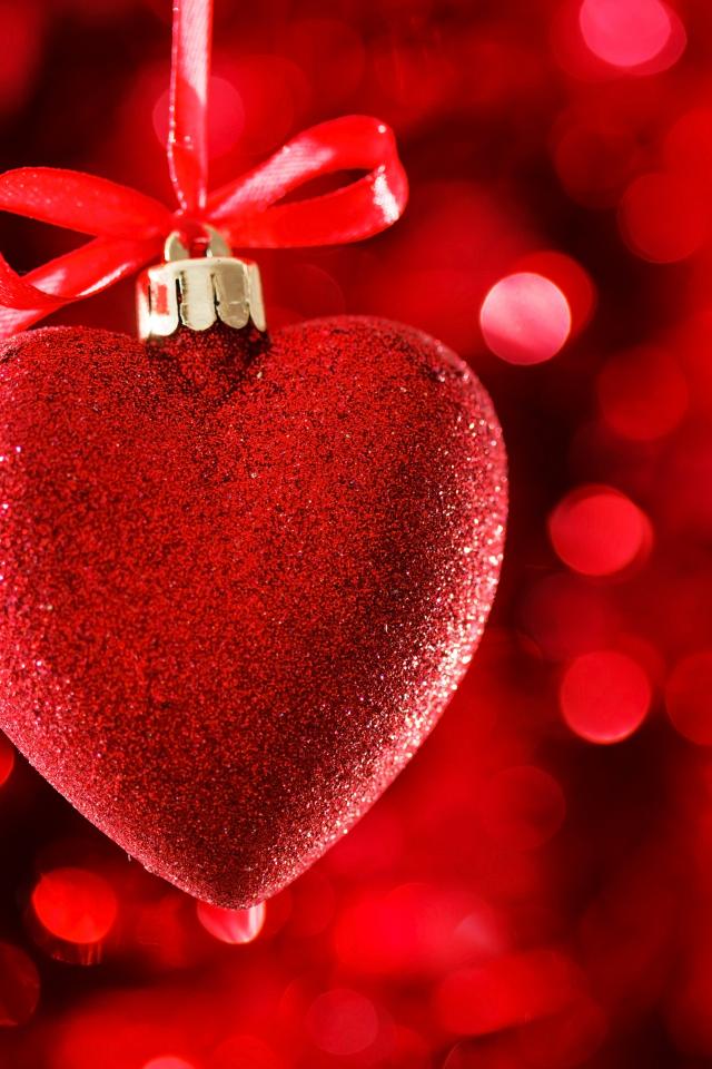 Wallpaper Red big shiny heart with ribbon on red background
