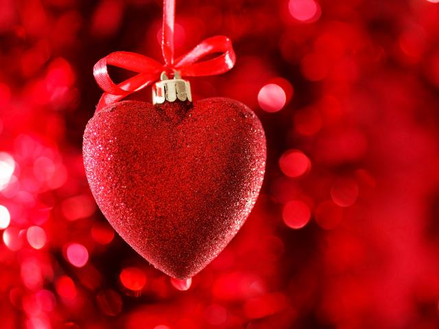 Wallpaper Red big shiny heart with ribbon on red background