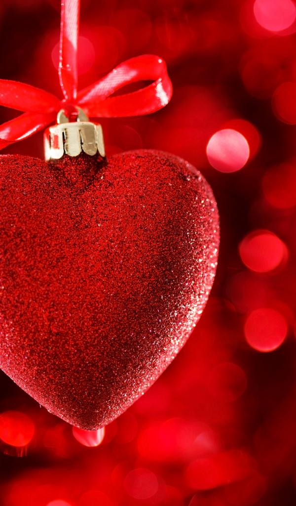 Wallpaper Red big shiny heart with ribbon on red background