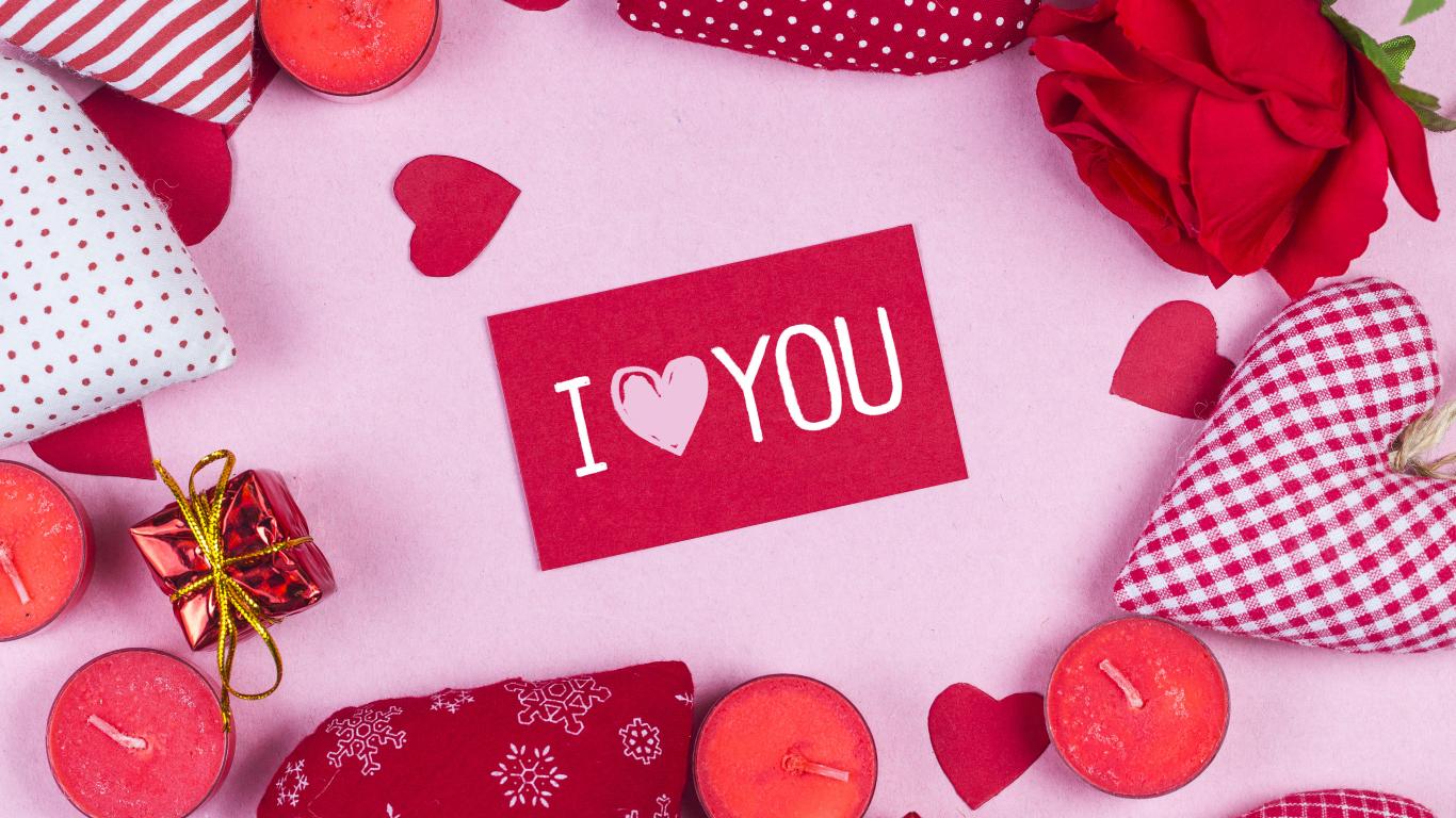 Wallpaper Hearts, candles and a rose around the inscription I love you