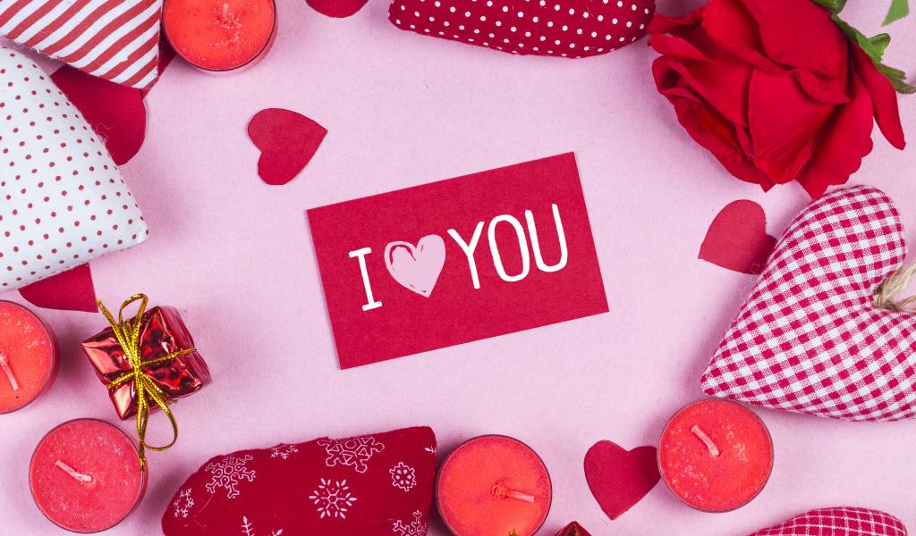 Wallpaper Hearts, candles and a rose around the inscription I love you