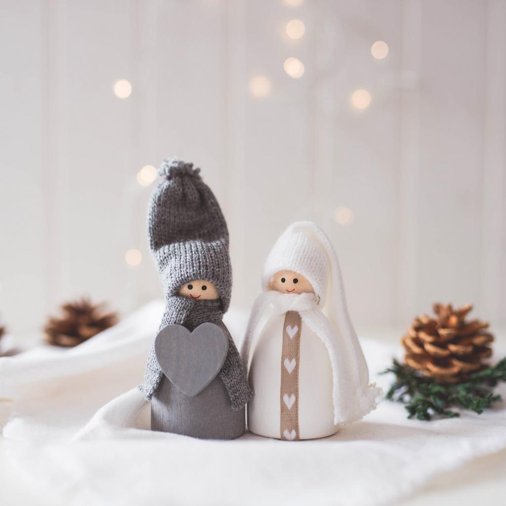 Wallpaper Two enamored figurines in knitted suits