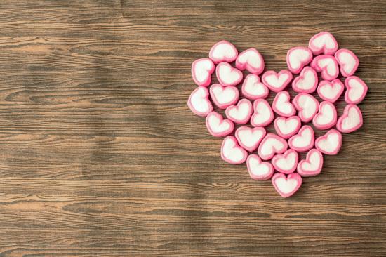 Wallpaper Heart made of heart-shaped sweets on a wooden table