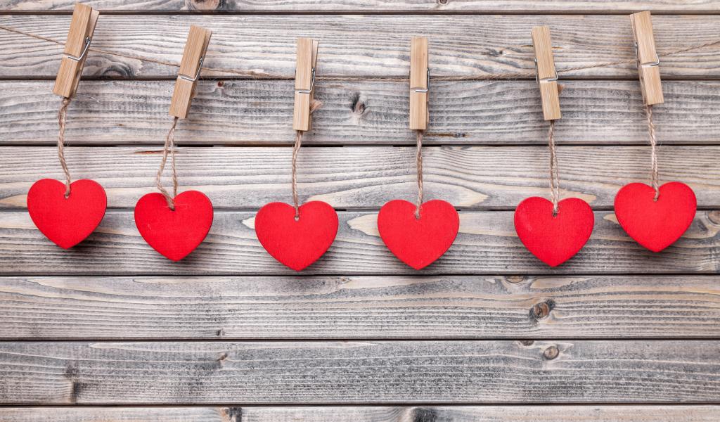 Wallpaper Red hearts on clothespins on a wooden table