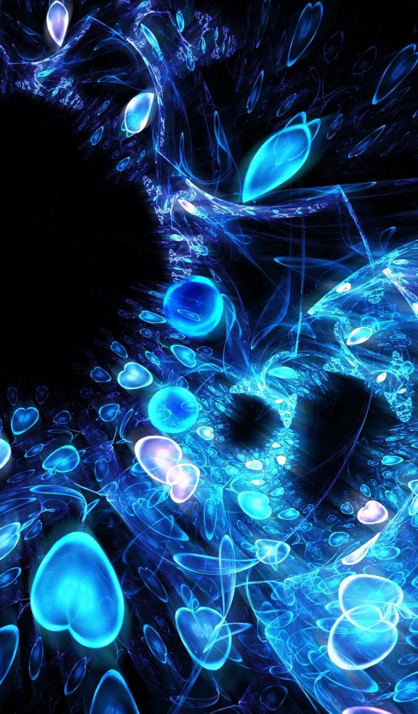 Wallpaper Pattern of neon hearts on a black background, abstraction