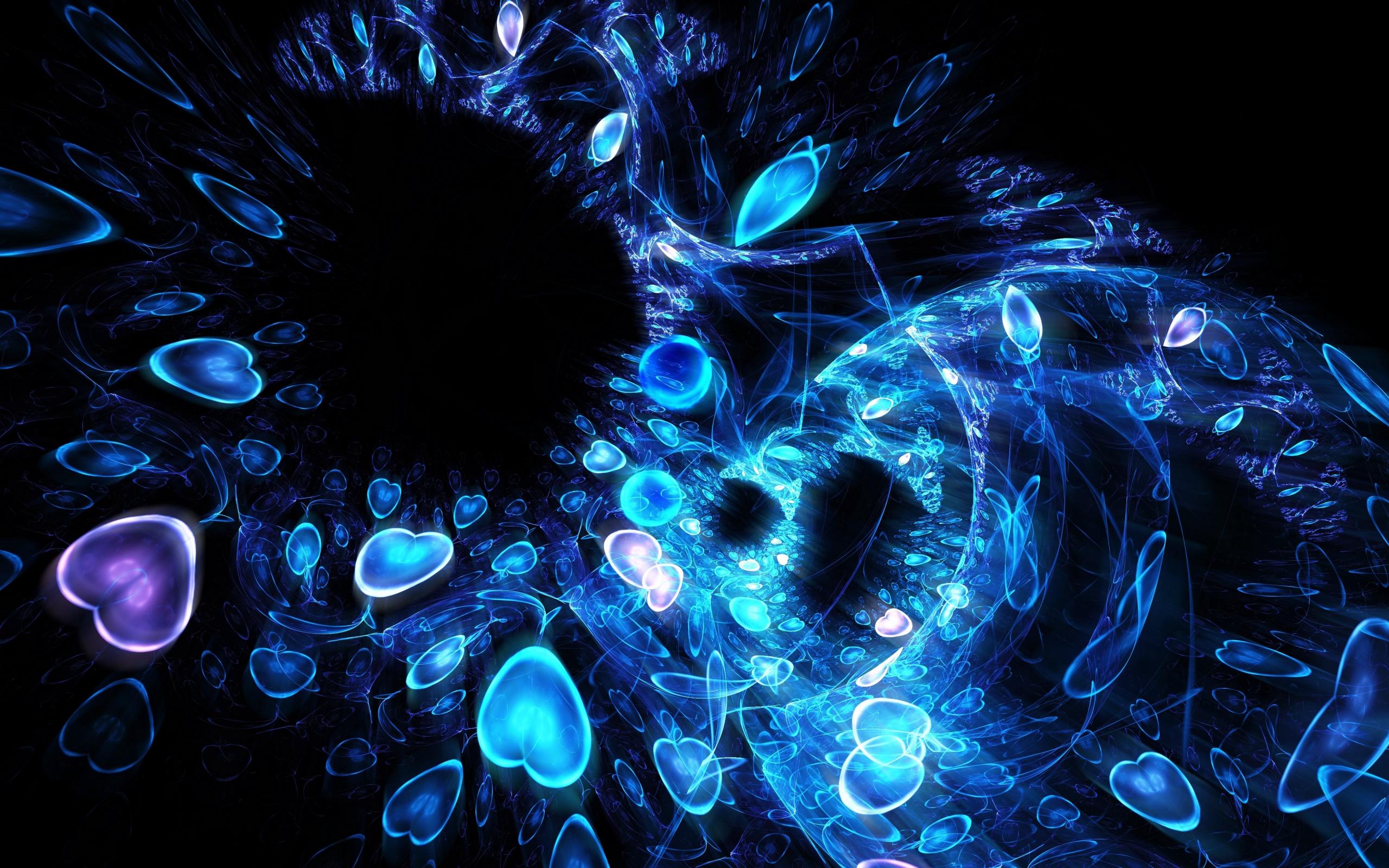 Wallpaper Pattern of neon hearts on a black background, abstraction