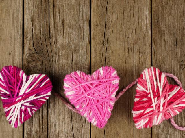 Wallpaper Hearts from threads on a wooden table