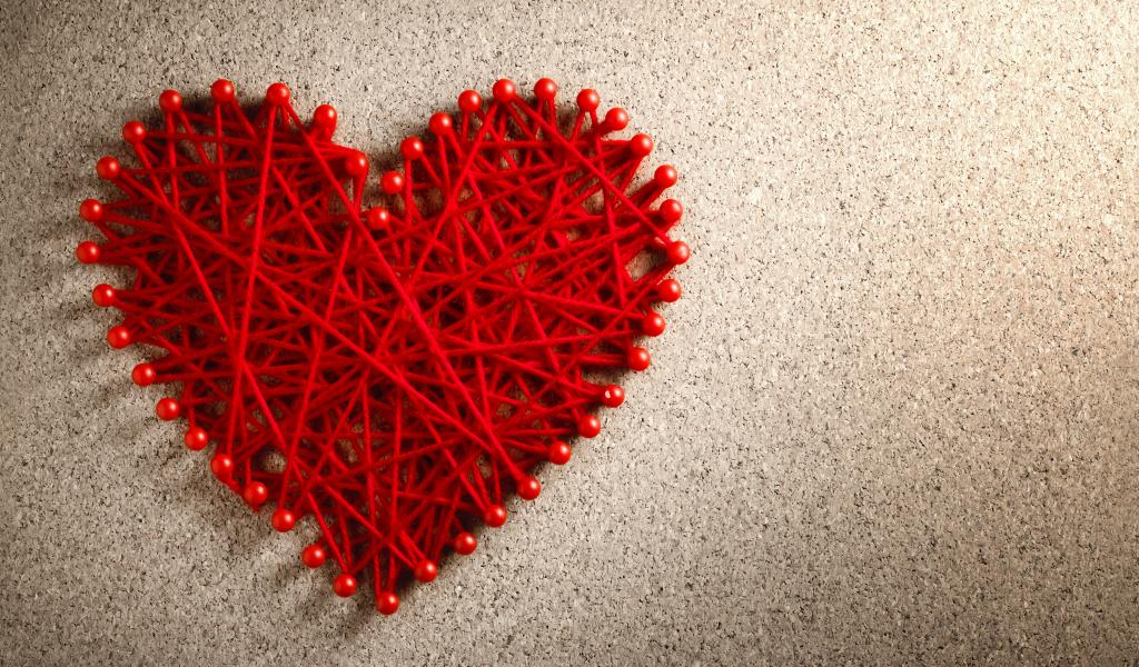 Wallpaper The heart of red threads and invisible on a gray background