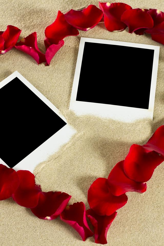 Wallpaper Heart of rose petals in the sand with patterns for photo