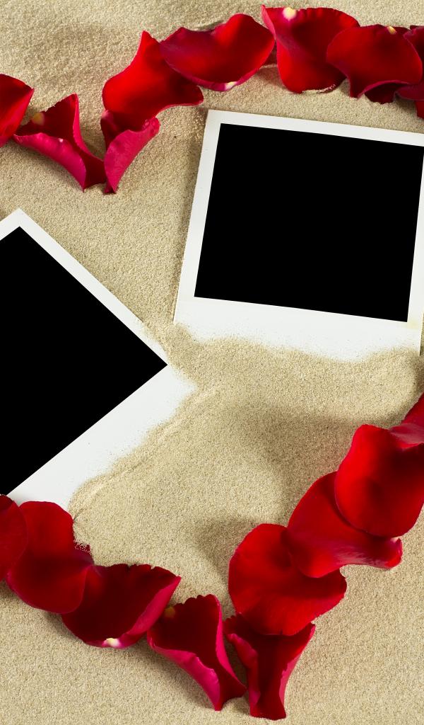 Wallpaper Heart of rose petals in the sand with patterns for photo