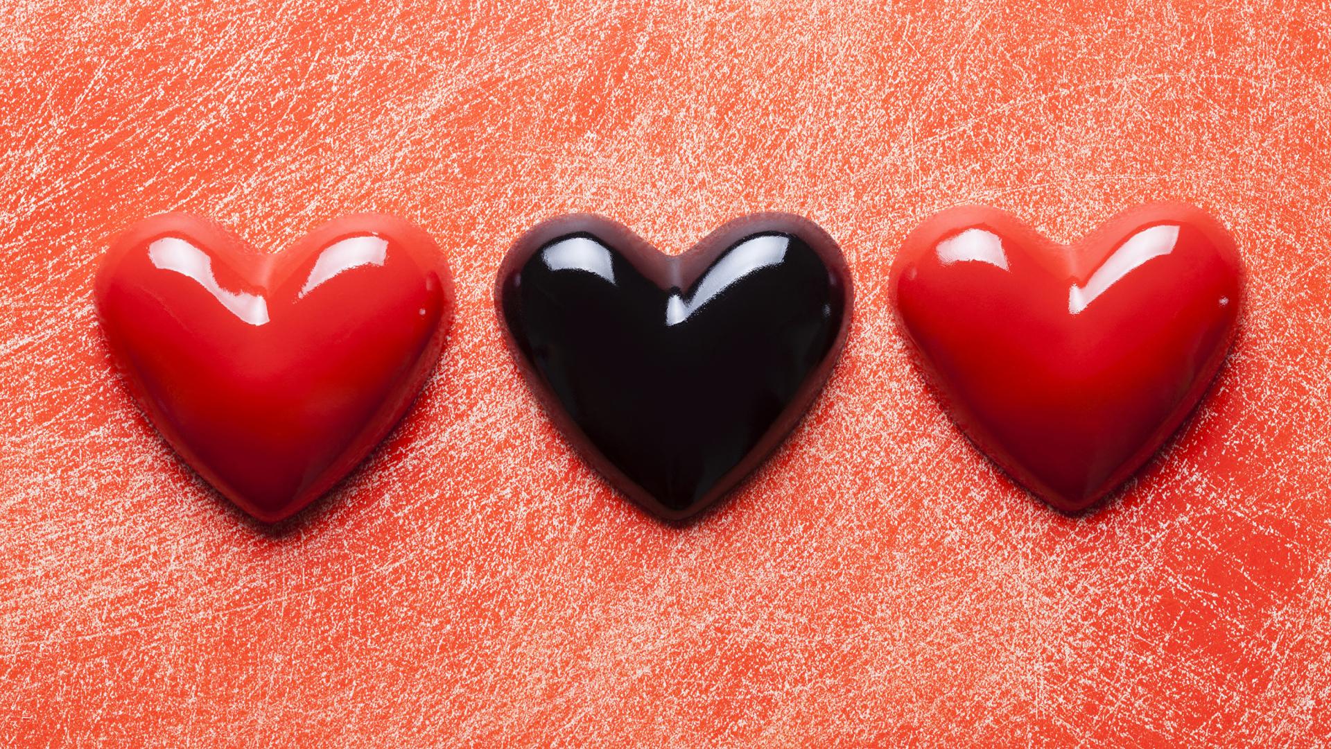Wallpaper Three hearts on a red background