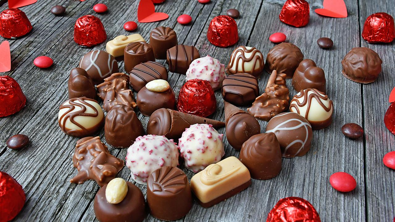 Wallpaper Sweet heart made of chocolates on wooden table