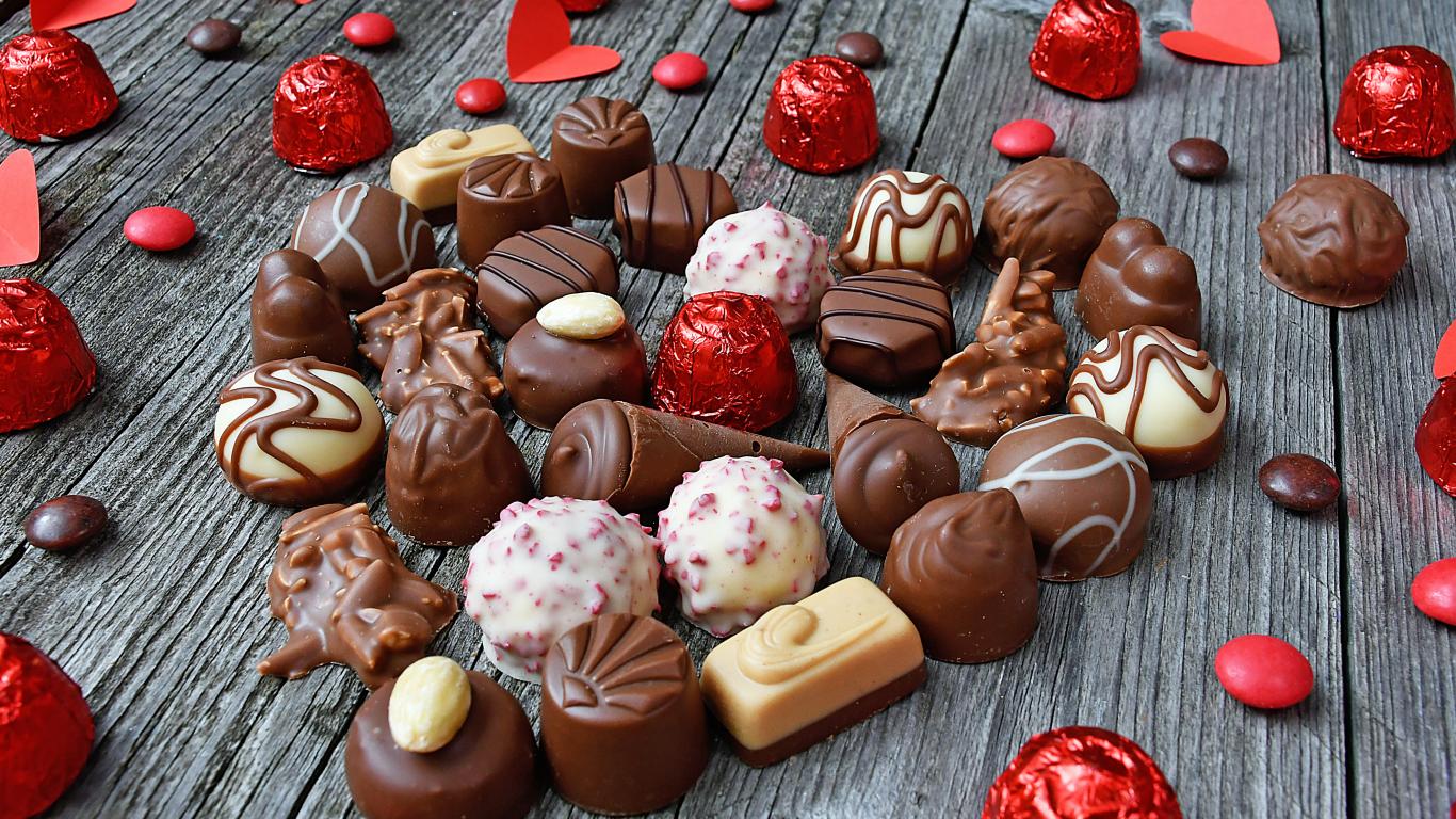Wallpaper Sweet heart made of chocolates on wooden table