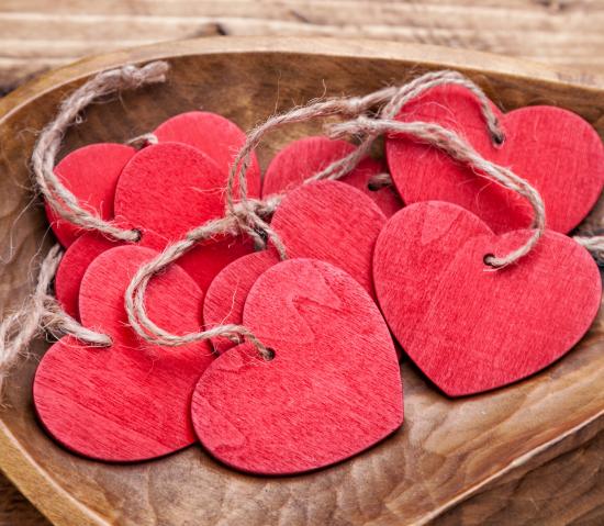 » Wallpaper Red wooden hearts on threads in a wooden box